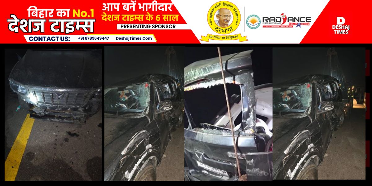 - स्कॉर्पियो बुरी तरह पिचक गई।