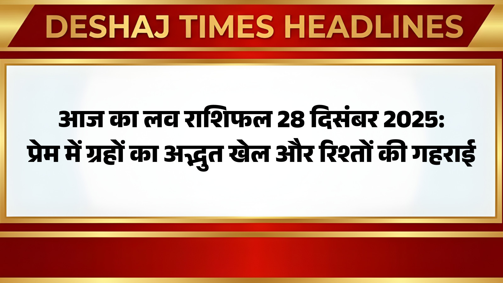 Aaj Ka Love Horoscope: ब्रह्मांड की असीम ऊर्जा और दिव्य ग्रहों की चाल से प्रभावित, प्रत्येक दिवस हमारे रिश्तों और प्रेम संबंधों में नवीनता और गहरी समझ लाता है। आज, 28 दिसंबर 2025, का यह विशेष दिन भी प्रेमियों और संबंधों के लिए अनूठे संकेत लेकर आया है। दैवीय गणनाएं बताती हैं कि कैसे विभिन्न राशियों के जातक इस ऊर्जा से प्रभावित होकर अपने प्रेम जीवन में नए अध्याय रचेंगे। ग्रहों की विशेष स्थिति के कारण कुछ राशियों के प्रेम जीवन में नई शुरुआत के योग बन रहे हैं, वहीं कुछ के रिश्तों में समझ, भरोसा और भावनात्मक गहराई में वृद्धि होगी। आप पढ़ रहे हैं देशज टाइम्स बिहार का N0.1। आइए, जानें ज्योतिषाचार्य डॉ एन के बेरा के अनुसार सभी 12 राशियों का आज का लव राशिफल।