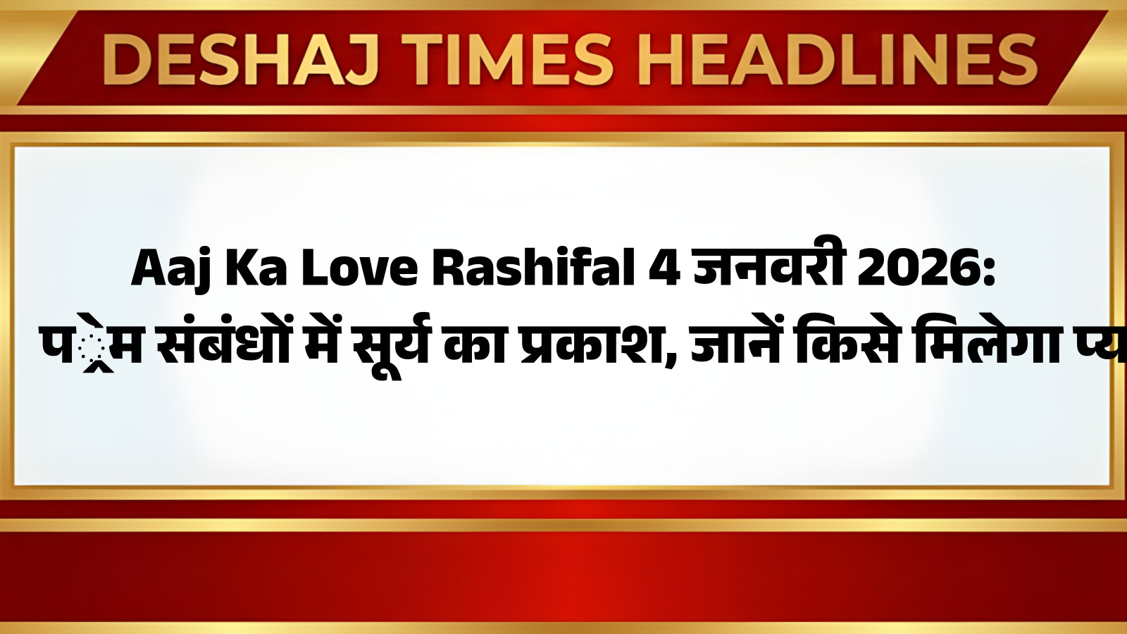 ब्रह्मांड में ग्रहों की चाल, विशेषकर सूर्य का प्रभाव, हमारे रिश्तों पर गहरा असर डालता है। 4 जनवरी 2026, रविवार का दिन प्रेम संबंधों के लिए विशेष संदेश लेकर आया है। आज का लव राशिफल बताता है कि सूर्य की ऊर्जा से प्रेम संबंधों में स्पष्टता और गहराई आएगी। कुछ राशियों के लिए जहां रोमांस के द्वार खुलेंगे, वहीं कुछ को अहंकार और गलतफहमी से बचने की आवश्यकता होगी ताकि प्रेम की पवित्र ज्योति अखंड बनी रहे। आप पढ़ रहे हैं देशज टाइम्स बिहार का N0.1।