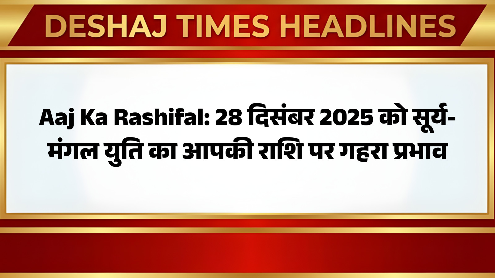 Aaj Ka Rashifal: ब्रह्मांड में ग्रहों की चाल का हमारे जीवन पर गहरा प्रभाव पड़ता है। वैदिक ज्योतिष के अनुसार, प्रत्येक ग्रह की स्थिति और उसकी अन्य ग्रहों के साथ युति महत्वपूर्ण फल देती है। आज 28 दिसंबर 2025 को एक ऐसी ही विशेष खगोलीय घटना घटित हो रही है, जब ऊर्जा के प्रतीक सूर्य और पराक्रम के कारक मंगल एक साथ आकर एक शक्तिशाली युति का निर्माण कर रहे हैं। इस युति का विभिन्न राशियों पर क्या प्रभाव पड़ेगा, आइए विस्तार से जानते हैं। आप पढ़ रहे हैं देशज टाइम्स बिहार का N0.1।
