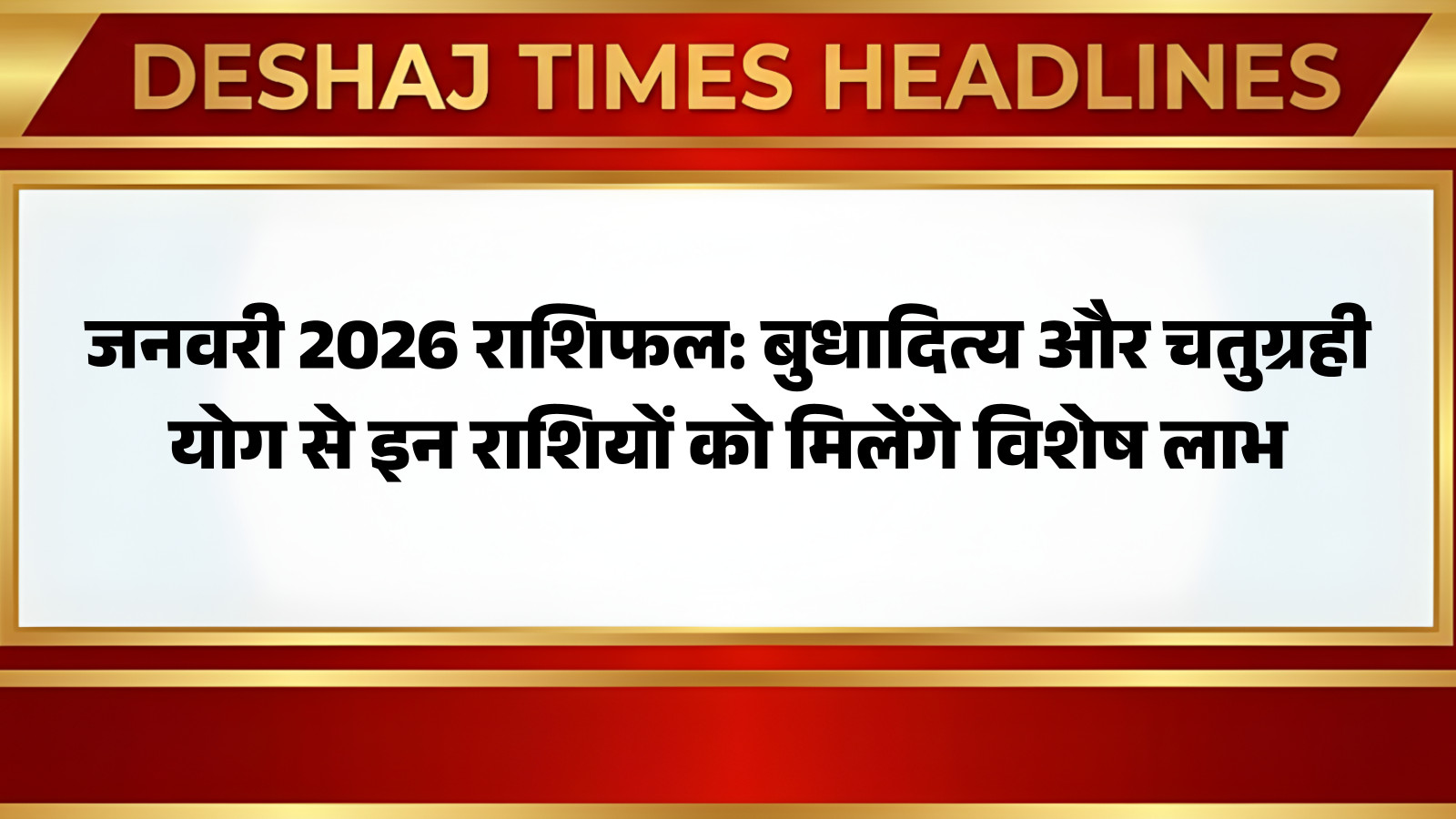 जनवरी 2026 का यह माह **सिंह**, **कन्या** और **मीन** राशि के जातकों के लिए अत्यंत भाग्यशाली रहने वाला है। बुधादित्य राजयोग और चतुग्रही योग के शुभ प्रभाव से इन राशियों को जीवन के विभिन्न पहलुओं में विशेष लाभ और अनुकूल परिणाम प्राप्त होंगे। यह ग्रहों का ऐसा दुर्लभ संयोग है जो इन जातकों के लिए उन्नति, सफलता और सुख-समृद्धि के द्वार खोलेगा। आप पढ़ रहे हैं देशज टाइम्स बिहार का N0.1। इस अवधि में उन्हें कई शुभ अवसरों की प्राप्ति होगी और उनके प्रयासों में सफलता मिलेगी। इन राशियों के जातकों को स्वास्थ्य, करियर, प्रेम संबंधों और आर्थिक मामलों में विशेष अनुकूलता का अनुभव होगा, जिससे उनके जीवन में संतुलन और प्रसन्नता आएगी।