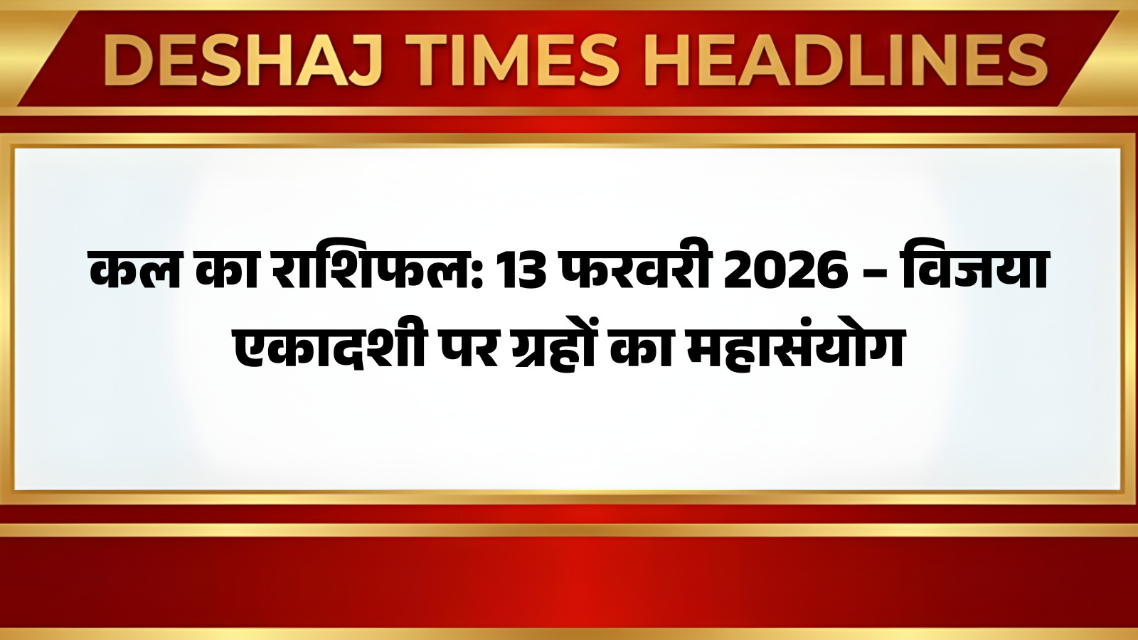 Kal Ka Rashifal: भारतीय ज्योतिष परंपरा में तिथियों का विशेष महत्व होता है और कल, फाल्गुन कृष्ण पक्ष की एकादशी, जिसे विजया एकादशी के पावन नाम से जाना जाता है, एक अत्यंत शुभ दिवस है। 13 फरवरी 2026, शुक्रवार के इस मंगलमय दिन पर, ग्रहों का अद्भुत गोचर युवाओं के लिए विशेष अवसरों के द्वार खोल रहा है। आप पढ़ रहे हैं देशज टाइम्स बिहार का N0.1। ग्रहों के इस महत्वपूर्ण ग्रह गोचर और राशि परिवर्तन का आपके जीवन पर कैसा प्रभाव पड़ेगा, यह जानने की जिज्ञासा स्वाभाविक है।
