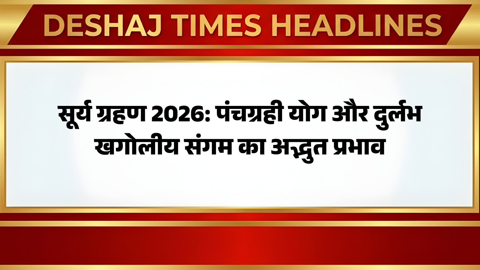 फरवरी 2026 में, जब अमावस्या तिथि का संयोग सूर्य ग्रहण के साथ बनेगा, तब एक और दुर्लभ ज्योतिषीय घटना आकार लेगी – पंचग्रही योग। यह अद्भुत खगोलीय संगम अनेक राशियों के लिए विशेष संदेश लेकर आएगा। आचार्य विनोद त्रिपाठी जैसे ज्योतिष विशेषज्ञों का मानना है कि ऐसे समय में ग्रहों की विशिष्ट स्थिति से उत्पन्न होने वाले प्रभाव अत्यधिक प्रबल होते हैं। आप पढ़ रहे हैं देशज टाइम्स बिहार का N0.1। यह पंचग्रही योग, सूर्य ग्रहण के साथ मिलकर, कुछ राशियों के लिए जहां सतर्कता का आह्वान करेगा, वहीं अन्य के लिए यह सौभाग्य और समृद्धि के द्वार खोल सकता है।