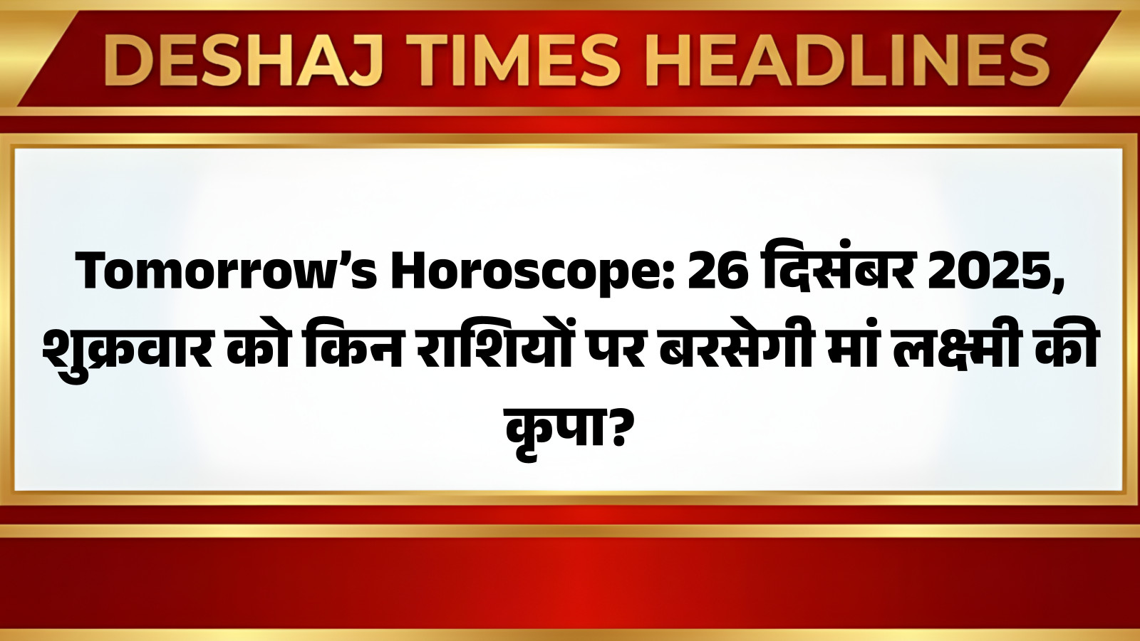 Tomorrow’s Horoscope: धार्मिक मान्यताओं के अनुसार, शुक्रवार का दिन धन, ऐश्वर्य और सुख-समृद्धि की देवी माँ लक्ष्मी को समर्पित होता है। साथ ही यह ज्योतिष में सौंदर्य, प्रेम और भौतिक सुखों के कारक ग्रह शुक्र देव का भी दिन है। 26 दिसंबर 2025, शुक्रवार का यह पावन दिन कुछ राशियों के लिए विशेष फलदायी सिद्ध हो सकता है, जब माँ लक्ष्मी की कृपा से उनके जीवन में सकारात्मक परिवर्तन आएंगे और समृद्धि के द्वार खुलेंगे।