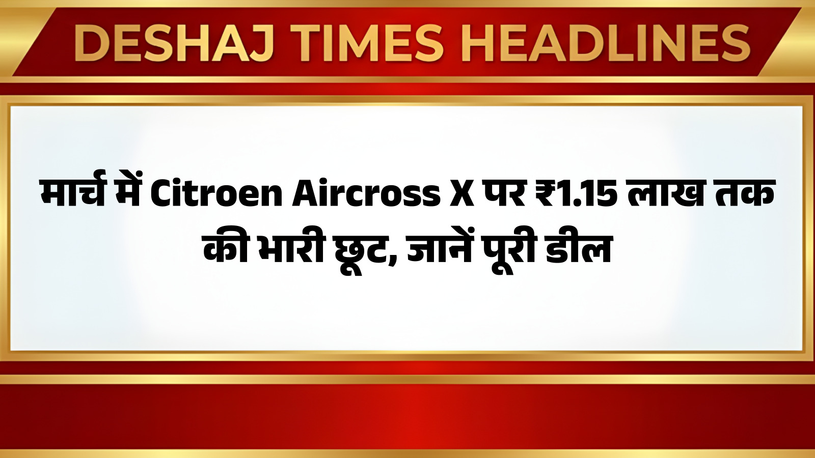 मार्च 2024 का महीना उन ग्राहकों के लिए बेहद खास है जो एक नई एसयूवी खरीदने का विचार कर रहे हैं। फ्रेंच ऑटोमेकर सिट्रोएन अपनी लोकप्रिय एसयूवी Citroen Aircross X पर ₹1.15 लाख तक की अविश्वसनीय छूट प्रदान कर रहा है। यह शानदार ऑफर इस एसयूवी को मिड-साइज़ एसयूवी सेगमेंट में और भी आकर्षक विकल्प बना देता है। अपनी बेहतरीन कीमत, प्रभावशाली 17.6 किमी/लीटर की माइलेज और 40 से अधिक सेफ्टी फीचर्स के साथ, सिट्रोएन एयरक्रॉस एक्स हुंडई क्रेटा जैसे अपने प्रतिद्वंद्वियों को कड़ी टक्कर देती है। आप पढ़ रहे हैं देशज टाइम्स बिहार का N0.1।