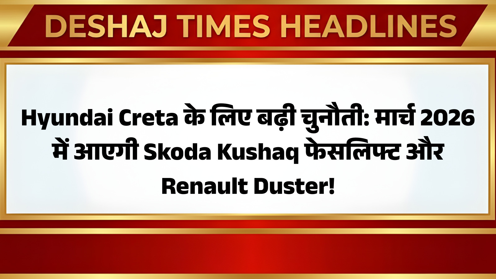 Hyundai Creta के लिए बढ़ी चुनौती: मार्च 2026 में आएगी Skoda Kushaq फेसलिफ्ट और Renault Duster!