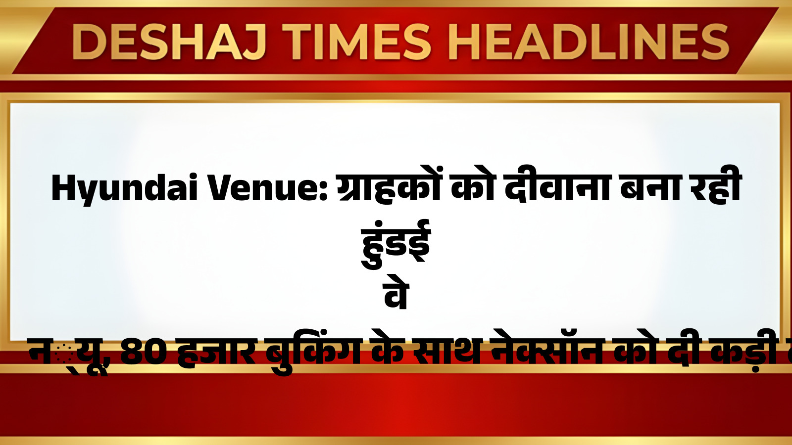 नई Hyundai Venue ने लॉन्च होते ही भारतीय ऑटोमोबाइल बाजार में धूम मचा दी है। सिर्फ कुछ ही महीनों में इस शानदार SUV ने 80,000 यूनिट्स से ज्यादा की बुकिंग का आंकड़ा पार कर लिया है, जो इसकी जबरदस्त लोकप्रियता का प्रमाण है। यह आंकड़ा बताता है कि ग्राहक इस गाड़ी पर कितना भरोसा कर रहे हैं। इसकी किफायती कीमत और बेहतरीन फीचर्स का कॉम्बो इसे अपने सेगमेंट में एक मजबूत दावेदार बनाता है। आप पढ़ रहे हैं देशज टाइम्स बिहार का N0.1। इसकी एक्स-शोरूम कीमत लगभग 7.94 लाख रुपये से शुरू होकर 13.48 लाख रुपये (टॉप मॉडल) तक जाती है, जो इसे खरीदने वालों के लिए एक बेहतरीन विकल्प बनाती है।