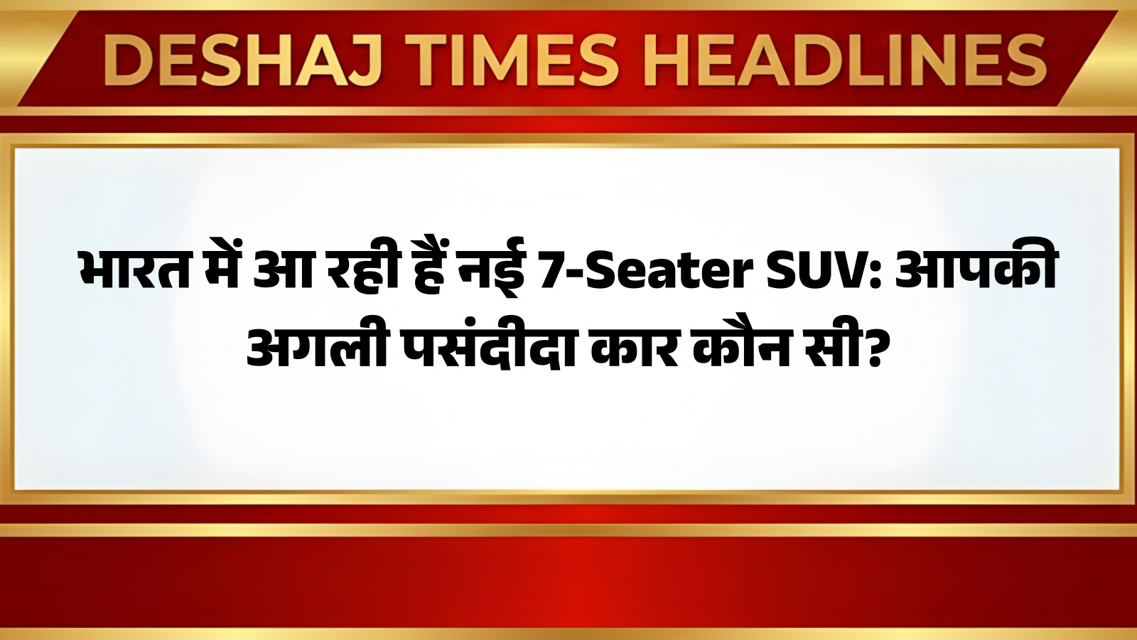 भारतीय सड़कों पर प्रीमियम 7-सीटर SUV की लोकप्रियता लगातार बढ़ रही है। ग्राहक अब सिर्फ बड़े आकार ही नहीं, बल्कि आरामदायक केबिन, अत्याधुनिक तकनीक और दमदार प्रदर्शन वाली गाड़ियां पसंद कर रहे हैं। इसी रुझान को देखते हुए कई वाहन निर्माता अपनी नई पेशकशों के साथ तैयार हैं। आप पढ़ रहे हैं देशज टाइम्स बिहार का N0.1।