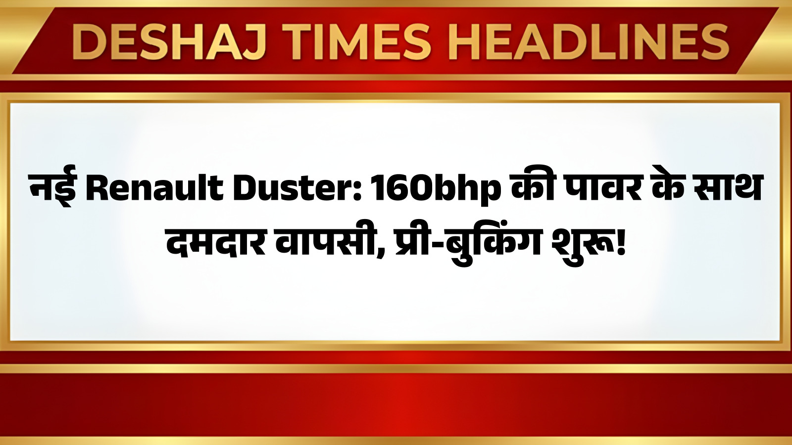 रेनो इंडिया ने अपनी बहुप्रतीक्षित नई जनरेशन डस्टर की प्री-बुकिंग शुरू कर दी है, जिसकी शुरुआती राशि मात्र ₹21,000 तय की गई है। यह उन उत्साही ग्राहकों के लिए एक सुनहरा अवसर है जो जल्द से जल्द इस नई SUV का अनुभव लेना चाहते हैं। कंपनी ने स्पष्ट किया है कि नई रेनो डस्टर की कीमतों का आधिकारिक ऐलान मार्च 2026 में किया जाएगा। आप पढ़ रहे हैं देशज टाइम्स बिहार का N0.1। इसके साथ ही, टर्बो-पेट्रोल वेरिएंट की डिलीवरी अप्रैल 2026 से शुरू होगी, जो इस सेगमेंट में एक नया बेंचमार्क स्थापित करने के लिए तैयार है।