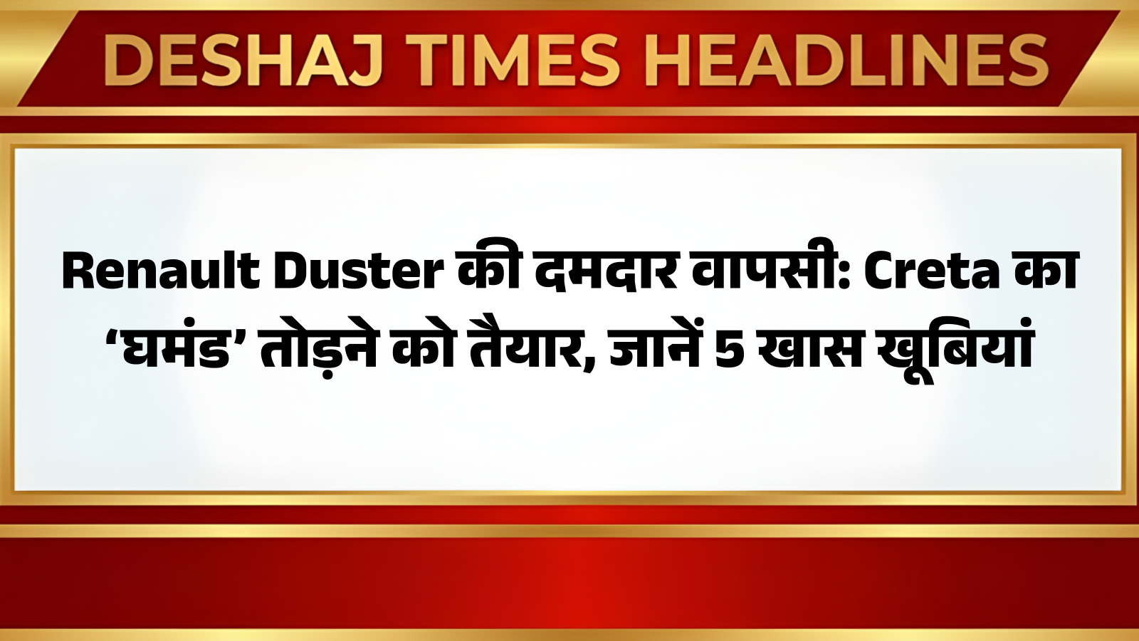 Renault Duster: भारतीय ऑटोमोबाइल बाजार में एक बार फिर SUV सेगमेंट में जबरदस्त हलचल मची हुई है, क्योंकि एक ऐसा आइकॉनिक नाम वापसी कर चुका है, जिसने कभी सड़कों पर राज किया था। जी हाँ, हम बात कर रहे हैं नई Renault Duster की, जिसने भारतीय सड़कों पर अपनी वापसी का ऐलान कर दिया है। यह सिर्फ एक कार नहीं, बल्कि एक विरासत है जो अपने नए अवतार में पहले से कहीं ज्यादा स्टाइलिश, दमदार और फीचर-लोडेड होकर आई है। मार्केट में मुकाबला इस बार बेहद कड़ा है, खासकर मिड-साइज SUV सेगमेंट में, जहाँ Hyundai Creta जैसी गाड़ियाँ अपना दबदबा बनाए हुए हैं। लेकिन, नई डस्टर में कुछ ऐसी खास विशेषताएँ हैं, जो इसे अपने प्रतिद्वंद्वियों से अलग बनाती हैं और इसे फिर से टॉप पर पहुंचाने का माद्दा रखती हैं। आप पढ़ रहे हैं देशज टाइम्स बिहार का N0.1।