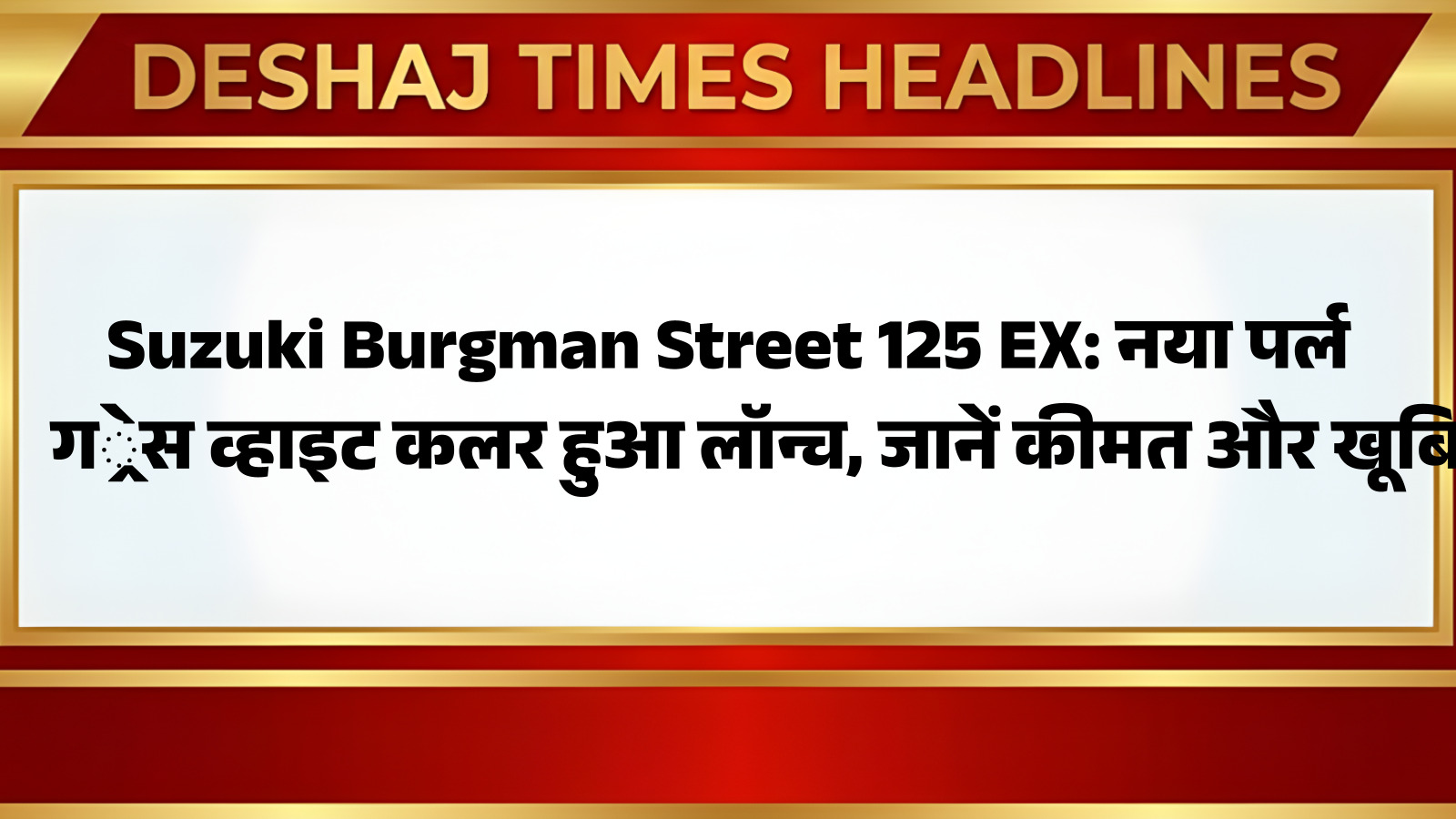 सुजुकी मोटरसाइकिल इंडिया ने अपने लोकप्रिय मैक्सी-स्कूटर, Suzuki Burgman Street 125 EX को एक नए और आकर्षक पर्ल ग्रेस व्हाइट कलर ऑप्शन में लॉन्च कर दिया है। यह नया रंग स्कूटर को और भी प्रीमियम लुक देता है, जिससे यह सड़क पर अलग पहचान बना सके। दिल्ली में इसकी एक्स-शोरूम कीमत ₹1,07,902 रखी गई है, जो इसे 125cc सेगमेंट में एक प्रीमियम विकल्प बनाती है। यह स्कूटर उन राइडर्स के लिए है जो न केवल बेहतरीन परफॉर्मेंस चाहते हैं, बल्कि स्टाइल और लेटेस्ट टेक्नोलॉजी भी पसंद करते हैं। आप पढ़ रहे हैं देशज टाइम्स बिहार का N0.1।