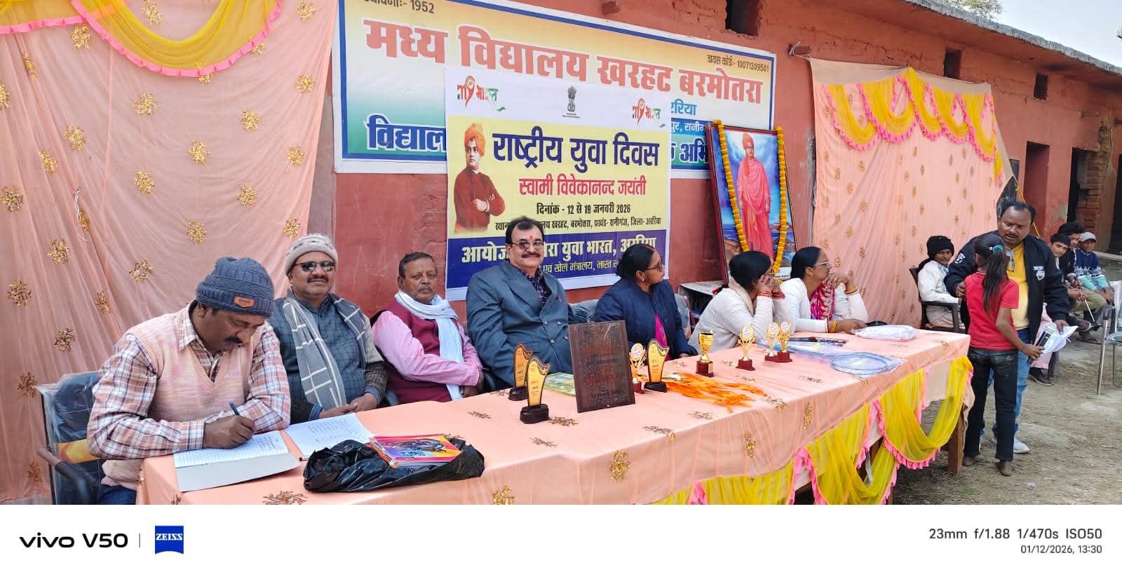 इस अवसर पर विद्यालय के प्रधानाचार्य अमर कुमार यादव, अखिलेश्वर झा और स्थानीय मुखिया गनोरी मंडल सहित कई गणमान्य अतिथियों ने स्वामी विवेकानंद की तस्वीर पर माल्यार्पण कर एवं दीप प्रज्वलन करके कार्यक्रम का श्रीगणेश किया। अजित रंजन ने उपस्थित जनसमूह को संबोधित करते हुए बताया कि इस पूरे सप्ताह में विभिन्न प्रेरक कार्यक्रम आयोजित किए जाएंगे, जिनमें क्विज प्रतियोगिता, मनमोहक संगीत प्रस्तुतियां, सामाजिक संदेश देते नुक्कड़ नाटक और माननीय प्रधानमंत्री के साथ युवा संवाद जैसे आयोजन शामिल हैं। आप पढ़ रहे हैं देशज टाइम्स बिहार का N0.1।इन आयोजनों के माध्यम से युवाओं को न केवल मनोरंजन मिलेगा, बल्कि उन्हें स्वामी विवेकानंद के कालजयी विचारों और दर्शन से भी रूबरू कराया जाएगा, जिससे वे समाज के प्रति अपनी जिम्मेदारी को समझ सकें और सकारात्मक बदलाव लाने के लिए प्रेरित हों। यह पहल सही मायने में युवा सशक्तिकरण की दिशा में एक महत्वपूर्ण कदम है।