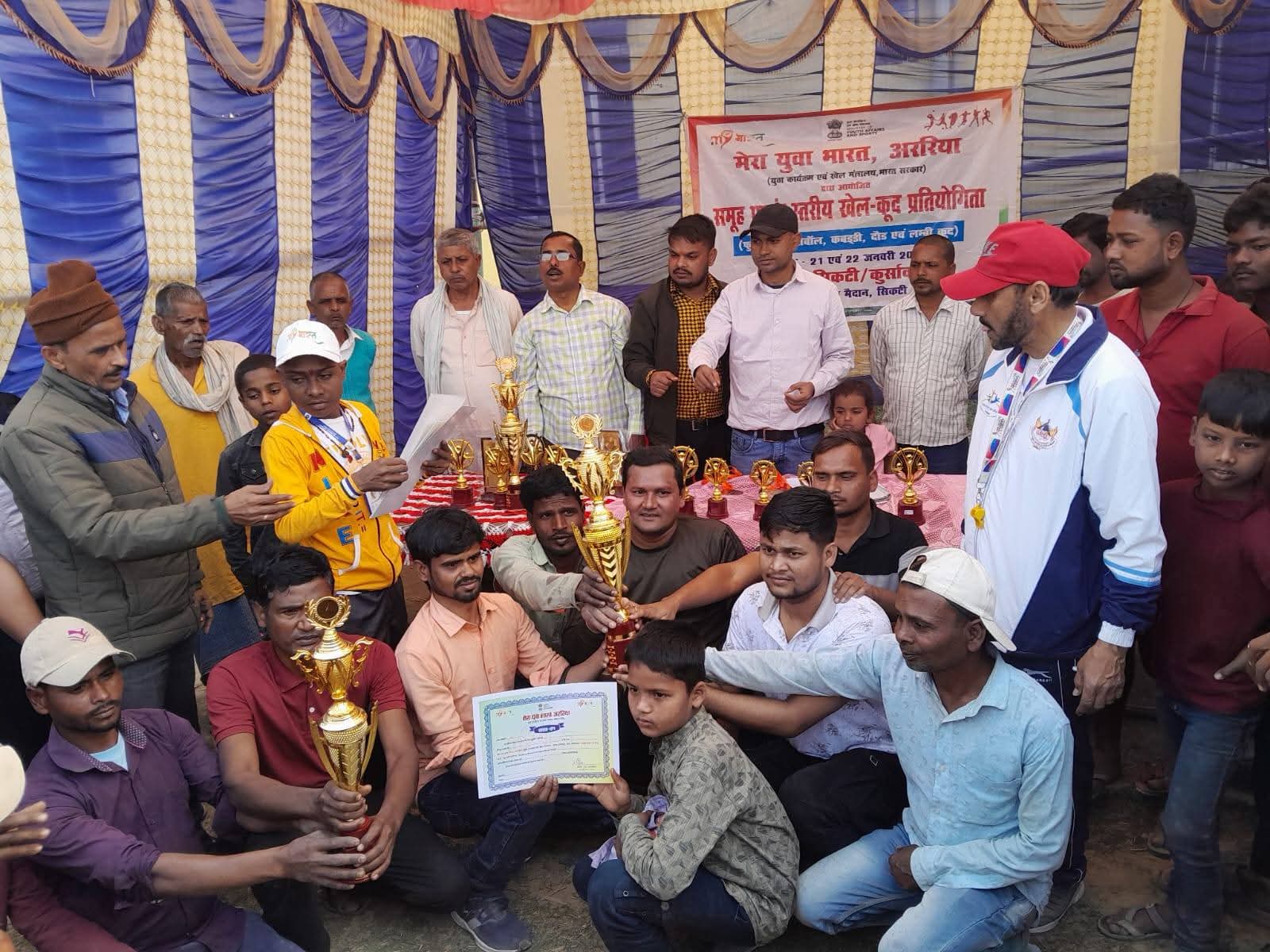 आवेश आलम अररिया। Araria News: सियासत की गलियों से इतर अब खेल के मैदानों में भी अररिया के युवा अपनी प्रतिभा का परचम लहरा रहे हैं, जहां माटी की महक के बीच भविष्य के सितारे तराशे जा रहे हैं। सिकटी प्रखंड के भिड़भिड़ी पंचायत में युवा कार्यक्रम एवं खेल मंत्रालय के ‘माय भारत’ अभियान के तहत एक भव्य प्रखंड स्तरीय खेलकूद प्रतियोगिता का आयोजन किया गया। इस कार्यक्रम का मुख्य उद्देश्य ग्रामीण युवाओं को एक मंच प्रदान करना था ताकि उनकी छिपी हुई प्रतिभा को निखारा जा सके। आप पढ़ रहे हैं देशज टाइम्स बिहार का N0.1।