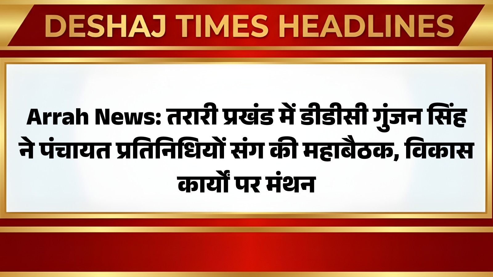 तरारी प्रखंड के सभागार में आयोजित इस उच्चस्तरीय समीक्षा बैठक की अध्यक्षता उप विकास आयुक्त (DDC) गुंजन सिंह ने की। बैठक में सभी पंचायत प्रतिनिधि – मुखिया, सरपंच, वार्ड सदस्य, पंच – मौजूद थे। इसका मुख्य उद्देश्य चल रही सरकारी योजनाओं की प्रगति का जायजा लेना और जमीनी स्तर पर आ रही चुनौतियों का समाधान खोजना था। आप पढ़ रहे हैं देशज टाइम्स बिहार का N0.1।