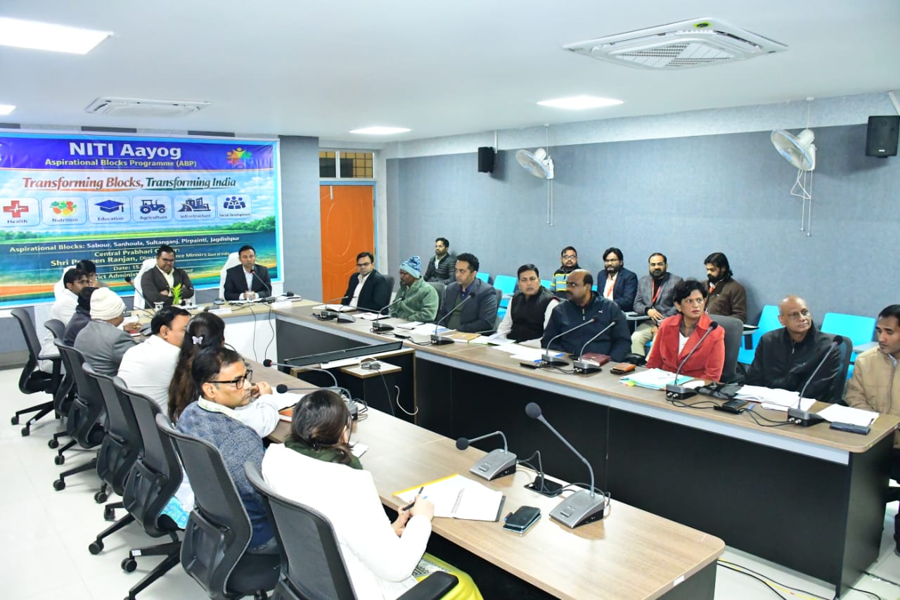 बिहार के भागलपुर जिले के जगदीशपुर, पीरपैंती, सबौर, सन्हौला और सुल्तानगंज जैसे आकांक्षी प्रखंडों की प्रगति की गहन समीक्षा के लिए एक उच्च-स्तरीय बैठक का आयोजन किया गया। यह बैठक 15 जनवरी 2026 को भागलपुर के समीक्षा भवन में हुई, जिसकी अध्यक्षता नीति आयोग द्वारा प्रतिनियुक्त सीपीओ एवं भारत सरकार के वित्त विभाग के निदेशक प्रवीण रंजन ने की। इस अवसर पर जिलाधिकारी डॉ. नवल किशोर चौधरी ने श्री रंजन का पौधा भेंट कर भागलपुर की धरती पर हार्दिक स्वागत किया।