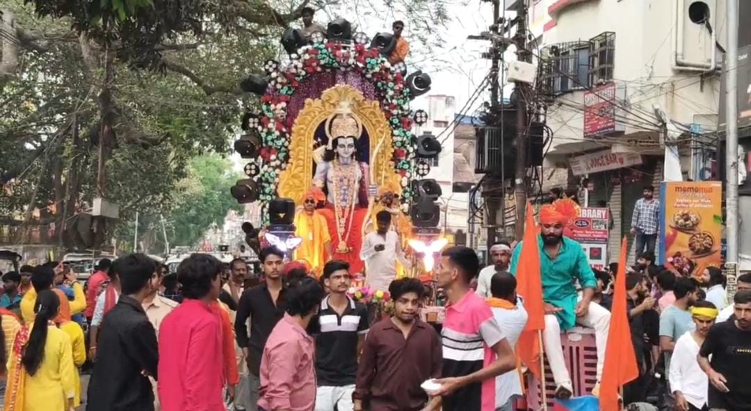 Bhagalpur Ram Navami: मानो आस्था का समंदर सड़कों पर उतर आया हो और पूरा शहर भक्ति के केसरिया रंग में सराबोर हो गया हो। रामनवमी के पावन अवसर पर भागलपुर की धरती जय श्री राम के नारों से गूंज उठी, जब हिंदुत्व सेवा संघ के बैनर तले एक भव्य शोभायात्रा निकाली गई। यह विशाल आयोजन मायागंज स्थित महाकालेश्वर मंदिर से शुरू हुआ, जहां वैदिक मंत्रोच्चार और विधिवत पूजा-अर्चना के बाद भगवान श्री राम का आशीर्वाद लेकर यात्रा का शुभारंभ किया गया। हजारों की संख्या में रामभक्तों का हुजूम इस ऐतिहासिक पल का गवाह बना। यह यात्रा शहर के प्रमुख मार्गों जैसे घंटाघर चौक, स्टेशन रोड और तिलकामांझी चौक से होते हुए वापस महाकालेश्वर मंदिर पहुंचकर संपन्न हुई। आप पढ़ रहे हैं देशज टाइम्स बिहार का N0.1। पूरे रास्ते भर लोगों ने पुष्प वर्षा कर यात्रा का भव्य स्वागत किया।