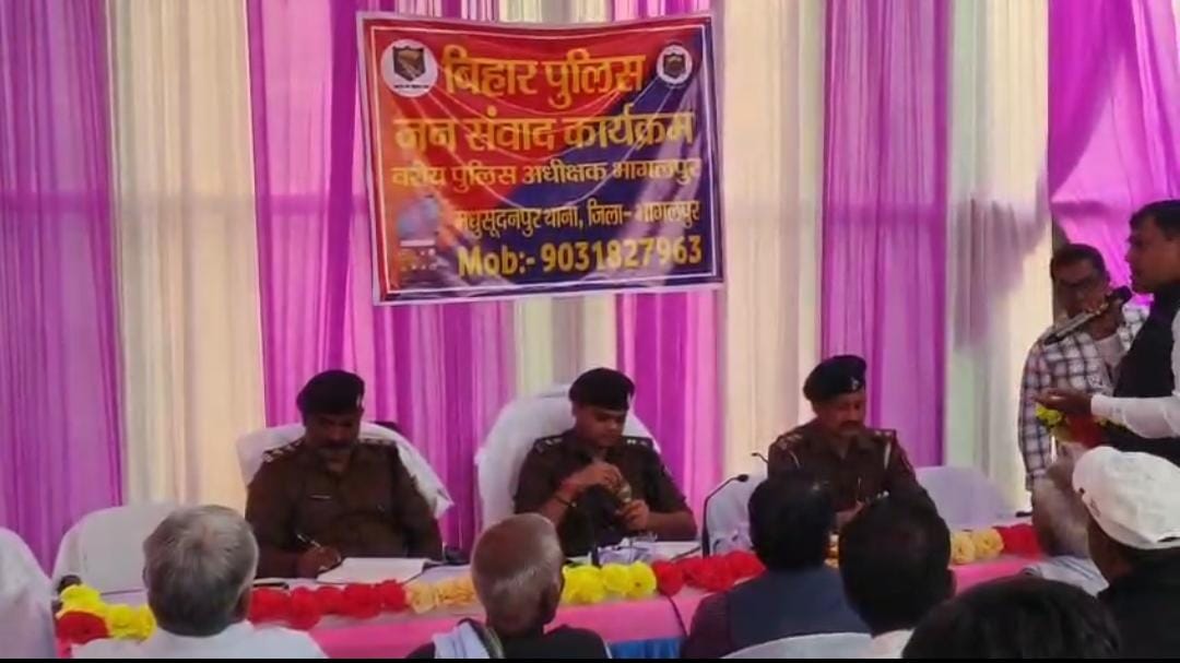 भागलपुर के मधुसुदनपुर थाना परिसर में नगर पुलिस अधीक्षक (SP) शैलेंद्र सिंह की अध्यक्षता में एक जनसंवाद कार्यक्रम का आयोजन किया गया। इस कार्यक्रम का मुख्य उद्देश्य पुलिस और जनता के बीच सीधा संवाद स्थापित करना और स्थानीय निवासियों की समस्याओं को मौके पर ही समझना था। कार्यक्रम में बड़ी संख्या में स्थानीय लोग अपनी शिकायतें लेकर पहुंचे। आप पढ़ रहे हैं देशज टाइम्स बिहार का N0.1।