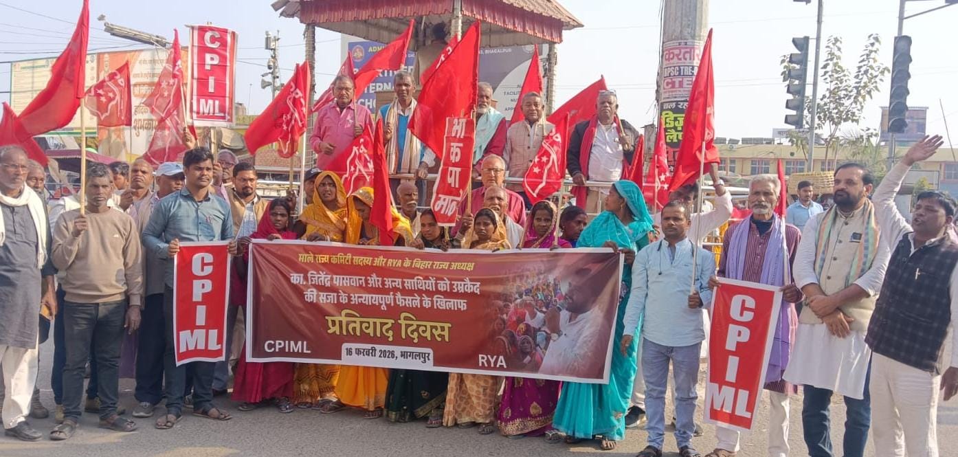 सोमवार को भागलपुर स्टेशन चौक पर भाकपा-माले और आरवाईए के कार्यकर्ताओं ने राज्यव्यापी प्रतिवाद दिवस के तहत जोरदार प्रदर्शन किया। यह विरोध प्रदर्शन कॉमरेड जितेंद्र पासवान और कॉमरेड श्रीराम कुशवाहा को एक हत्या के मामले में गोपालगंज जिला कोर्ट द्वारा सुनाई गई उम्रकैद और 50 हजार रुपए जुर्माने की सजा के खिलाफ आयोजित किया गया था। प्रदर्शनकारियों ने इस फैसले को झूठा और बदले की भावना से प्रेरित बताया।