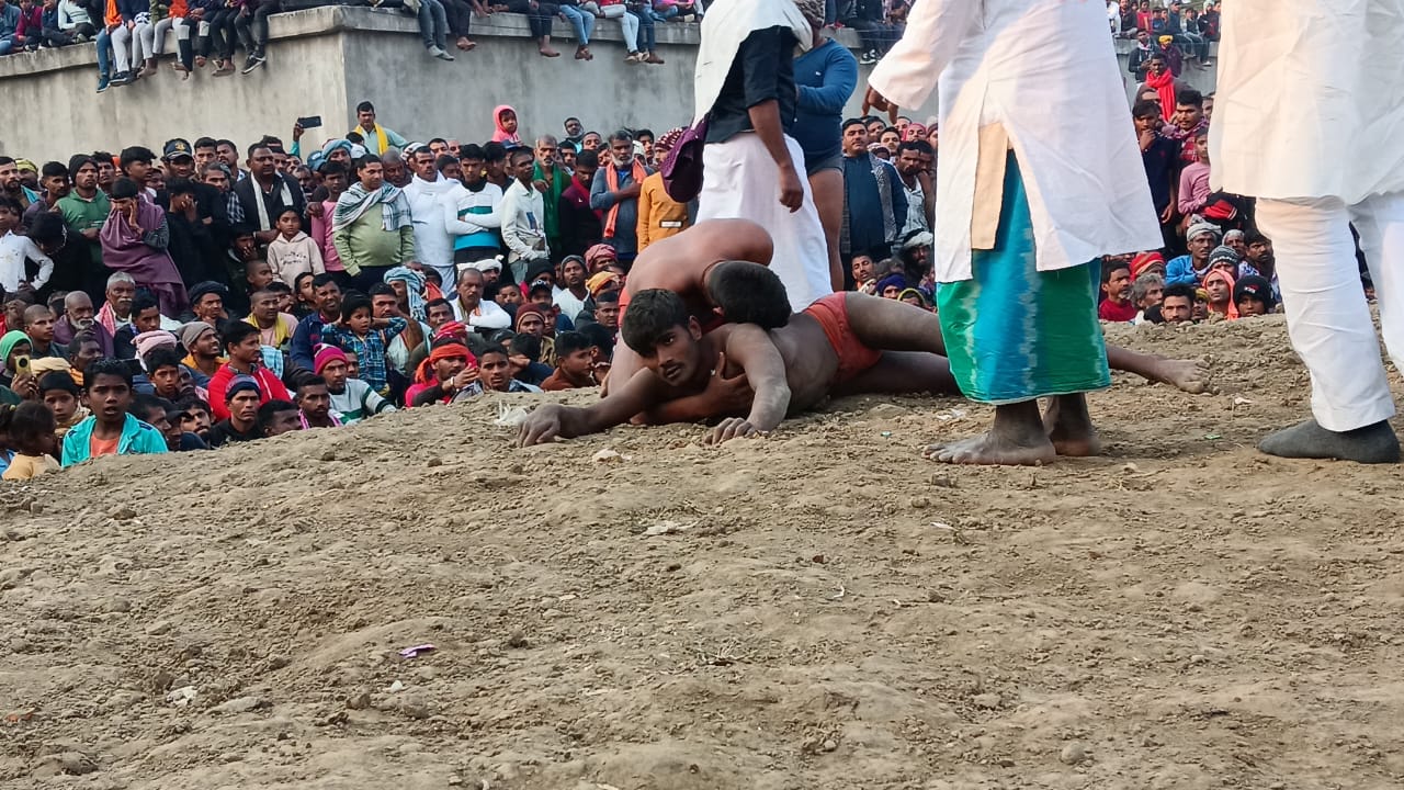 Bihar Wrestling: गोसाईदासपुर के अखाड़े में पहलवानों की दहाड़, मिट्टी का मान बढ़ाने का यह संग्राम अपने अंतिम पड़ाव पर पहुँच चुका है। 15 जनवरी 2026 को गोसाईदासपुर दंगल अखाड़ा कार्यक्रम का अंतिम दिन था, जहाँ बिहार के विभिन्न जिलों जैसे बेगूसराय, कटिहार, बांका, खगड़िया, पूर्णिया के साथ-साथ दिल्ली से आए पहलवानों ने भी अपनी शक्ति का प्रदर्शन किया। इस ऐतिहासिक Bihar Wrestling दंगल में, एक से बढ़कर एक धुरंधर पहलवानों ने अपनी प्रतिभा का लोहा मनवाया, जिसने दर्शकों को दांतों तले उंगलियां दबाने पर मजबूर कर दिया।
