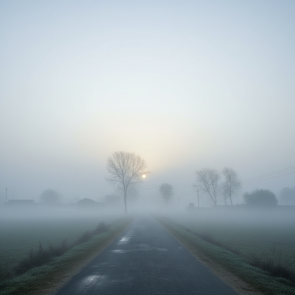 सुबह का मंजर: कोहरे की सफेद चादर