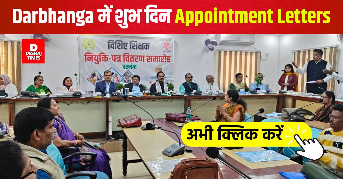 दरभंगा, 01 मार्च 2025, देशज टाइम्स ब्यूरो: दरभंगा समाहरणालय स्थित बाबा साहब डॉ. भीमराव अंबेडकर सभागार में आज विशिष्ट शिक्षक नियुक्ति पत्र वितरण समारोह आयोजित किया गया। इस अवसर पर सांसद, विधायकों, महापौर और प्रशासनिक अधिकारियों ने शिक्षकों को नियुक्ति पत्र प्रदान किए।