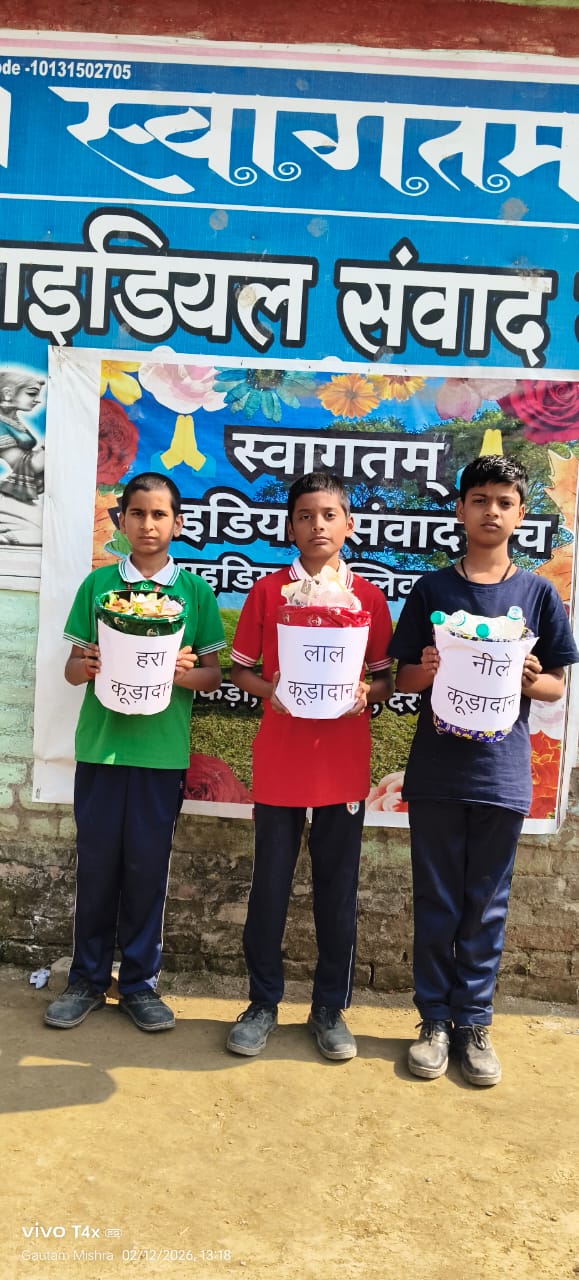 कार्यक्रम में छात्रों ने रंग-बिरंगे कूड़ेदानों के मॉडल का उपयोग कर कचरे के सही विभाजन की प्रक्रिया को बेहद सरल ढंग से प्रस्तुत किया। छात्र रौनक कुमार सदा ने हरे कूड़ेदान का महत्व बताते हुए समझाया कि इसमें रसोई से निकलने वाला गीला कचरा, जैसे भोजन के अवशेष और सब्जियों के छिलके डाले जाने चाहिए। आप पढ़ रहे हैं देशज टाइम्स बिहार का N0.1। वहीं, आयुष कुमार ने लाल कूड़ेदान के जरिए जैव-चिकित्सीय और हानिकारक कचरे को अलग रखने की जरूरत पर बल दिया। इसके बाद प्रीतम कुमार झा ने नीले कूड़ेदान का प्रदर्शन करते हुए इसमें कागज, प्लास्टिक और बोतल जैसा सूखा कचरा डालने की प्रक्रिया समझाई।