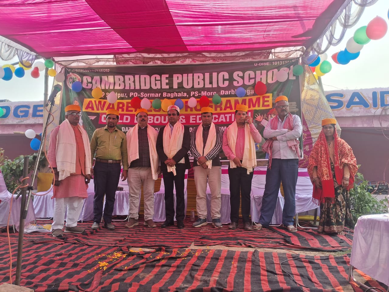 हनुमाननगर के सैदपुर स्थित कैम्ब्रिज पब्लिक स्कूल में शुक्रवार को ‘चाइल्ड लेबर एंड एजुकेशन अवेयरनेस प्रोग्राम’ का आयोजन किया गया। इस महत्वपूर्ण कार्यक्रम का उद्घाटन दरभंगा डिविजन के डिप्टी लेबर कमिश्नर राकेश रंजन ने किया। कार्यक्रम का मुख्य उद्देश्य समाज में बाल श्रम के प्रति जागरूकता बढ़ाना और बच्चों को शिक्षा के महत्व से अवगत कराना था।
