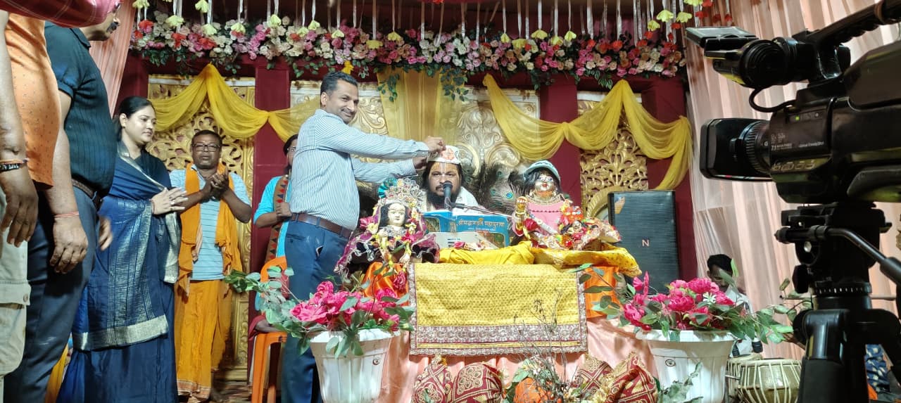 Bhagwat Katha: बिरौल के डुमरी गांव में परम श्रद्धेय विनोद जी महाराज के सानिध्य में आयोजित श्रीमद् भागवत कथा ज्ञान यज्ञ का भव्य समापन हुआ। इस दौरान अनुमंडल पुलिस पदाधिकारी प्रभाकर तिवारी ने अपनी धर्मपत्नी के साथ उपस्थित होकर कथा का श्रवण किया और समाज के लिए एक महत्वपूर्ण संदेश दिया।बिरौल प्रखंड के डुमरी गांव स्थित मां दुर्गा मंदिर प्रांगण में श्रीमद् भागवत कथा ज्ञान यज्ञ के अंतिम दिन अनुमंडल पुलिस पदाधिकारी प्रभाकर तिवारी ने अपनी धर्मपत्नी के साथ विशेष रूप से उपस्थित होकर कथा का श्रवण किया और परम पूज्य विनोद महाराज से आशीर्वाद प्राप्त किया।
