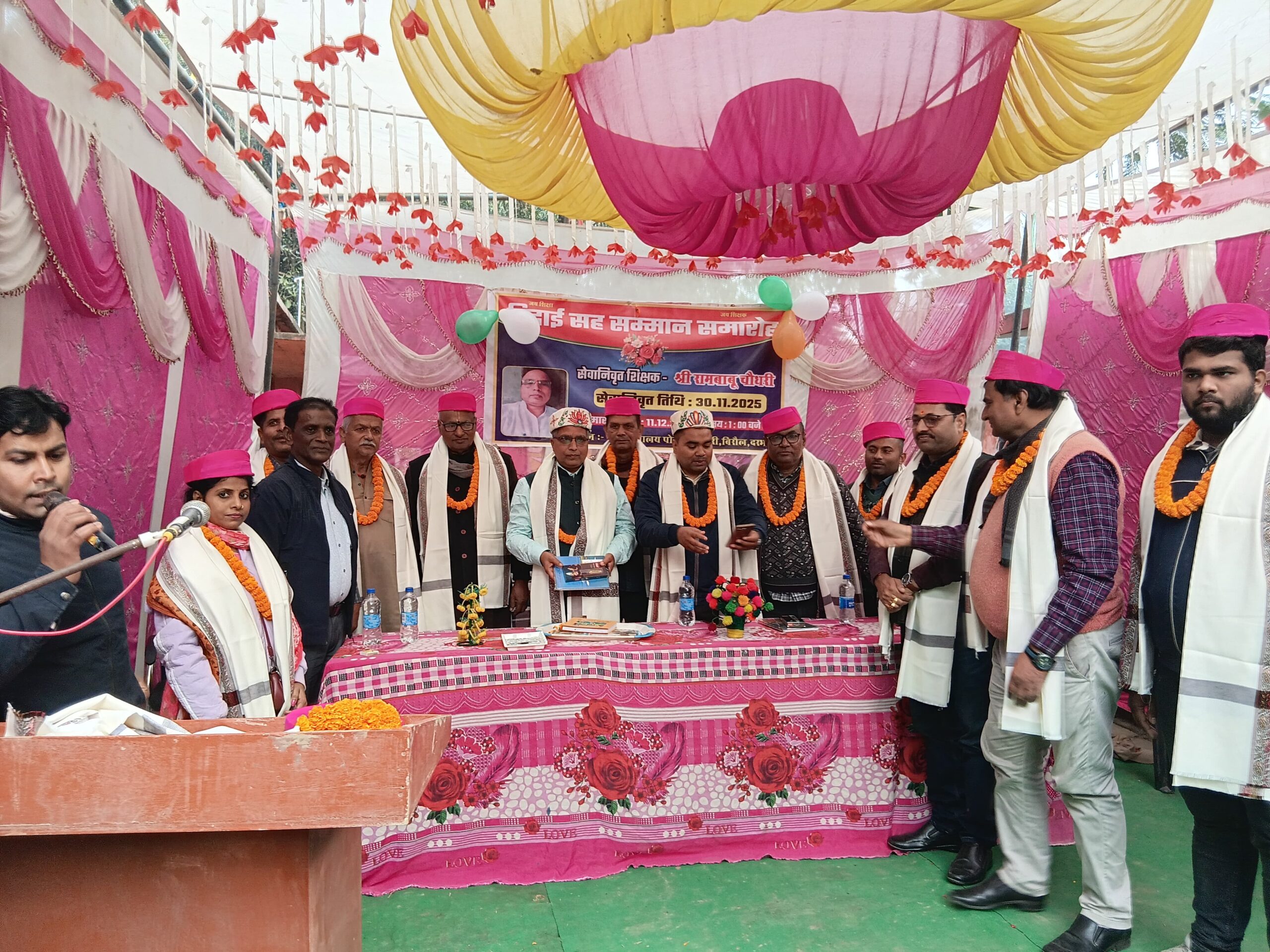 कार्यक्रम की शुरुआत माँ कमला माता के स्मरण और दीप प्रज्वलन के साथ हुई, जिसने वातावरण को पवित्रता और ऊर्जा से भर दिया। समारोह के मुख्य अतिथि प्रखंड शिक्षा पदाधिकारी श्री कुंदन कुमार थे, जबकि अवधेश चौधरी, अरुण बाबू, श्री राम चौधरी, संजय चौधरी, कन्हैया चौधरी, रमन जी, लेखापाल सूरज कुमार और प्रिंस कुमार विशिष्ट अतिथि के रूप में उपस्थित रहे। विद्यालय के प्रधानाध्यापक नरेश कुमार दास ने सभी अतिथियों को पाग, शॉल और माला पहनाकर सम्मानित किया, जो उनके प्रति विद्यालय के सम्मान का प्रतीक था। इस अवसर पर पूर्व शिक्षकगण, विद्यालय परिवार और स्थानीय ग्रामीणों की भारी उपस्थिति ने कार्यक्रम की गरिमा को और बढ़ाया। स्वागत-गीत, अतिथि सम्मान और प्रेरणादायी उद्बोधनों के बीच श्री राम बाबू चौधरी के सेवाकाल और विद्यालय के प्रति उनके अमूल्य योगदान को याद किया गया। आप पढ़ रहे हैं देशज टाइम्स बिहार का N0.1।