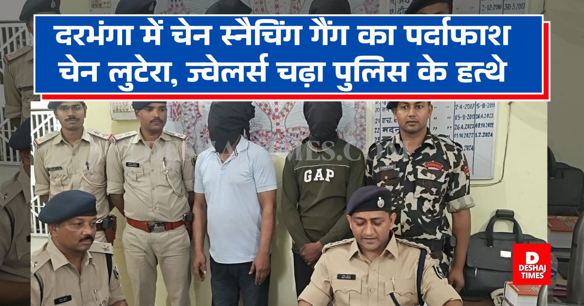 लहेरियासराय थाना क्षेत्र में लगातार हो रही चेन छिनतई (Chain Snatching) की घटनाओं के बाद पुलिस ने बड़ी कार्रवाई करते हुए शनिवार को एक छिनतई गिरोह के सदस्य और एक ज्वेलर्स प्रोपराइटर को गिरफ्तार कर लिया। गिरफ्तारी के दौरान चोरी के कई सामान भी बरामद किए गए। ज्वेलर्स दुकान से बरामद हुए चार टूटा सोने की चेन। वहीं, मधु वर्मा ने बताया कि उनका चेन 02 भर का था, जिसे एक लाख पचास हजार रुपए में खरीदी थी।