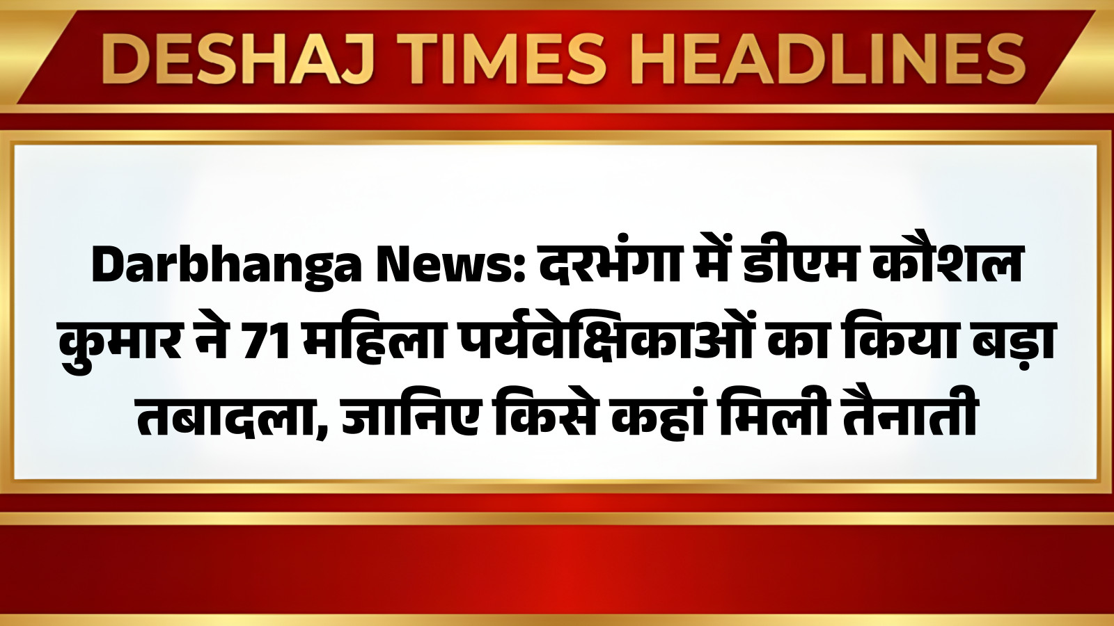 Darbhanga News: दरभंगा में डीएम कौशल कुमार ने 71 महिला पर्यवेक्षिकाओं का किया बड़ा तबादला, जानिए किसे कहां मिली तैनाती
