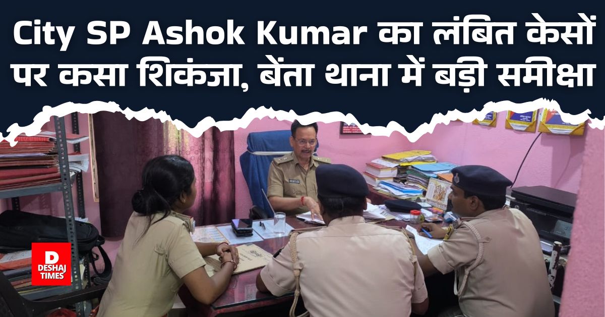 नगर पुलिस अधीक्षक अशोक कुमार ने मंगलवार को बेंता थाना में समीक्षात्मक बैठक कर अनुसंधान की गुणवत्ता, लंबित कांडों के निष्पादन और पंजियों की अद्यतन स्थिति की गहन समीक्षा की। बैठक वरीय पुलिस अधीक्षक जगुनाथ रेड्डी के निर्देशानुसार आयोजित की गई थी।
