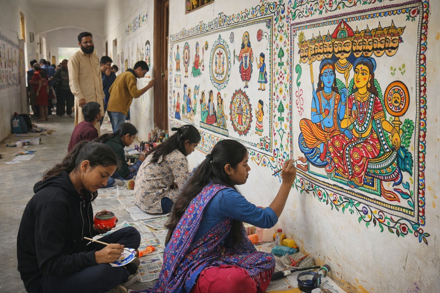 Mithila Painting: रंगों की कूची जब दीवारों से मिलती है, तो इतिहास और संस्कृति जीवंत हो उठती है। दरभंगा की धरती एक बार फिर इसी कला संगम की साक्षी बन रही है, जहाँ कलाकारों की कल्पनाएं दीवारों पर आकार ले रही हैं। जिला प्रशासन, दरभंगा के तत्वावधान में मिथिला लोक उत्सव-2026 के हिस्से के रूप में एक भव्य दीवार पेंटिंग प्रतियोगिता का आगाज हो चुका है। यह आयोजन लहेरियासराय स्थित प्रेक्षागृह-सह-आर्ट गैलरी में हो रहा है, जिसकी चयनित दीवारें अब कलाकारों के लिए कैनवास बन चुकी हैं। यह पांच दिवसीय प्रतियोगिता 25 फरवरी 2026 तक चलेगी, जिसमें 50 से अधिक प्रतिभागी अपनी प्रतिभा का प्रदर्शन कर रहे हैं। आप पढ़ रहे हैं देशज टाइम्स बिहार का N0.1।