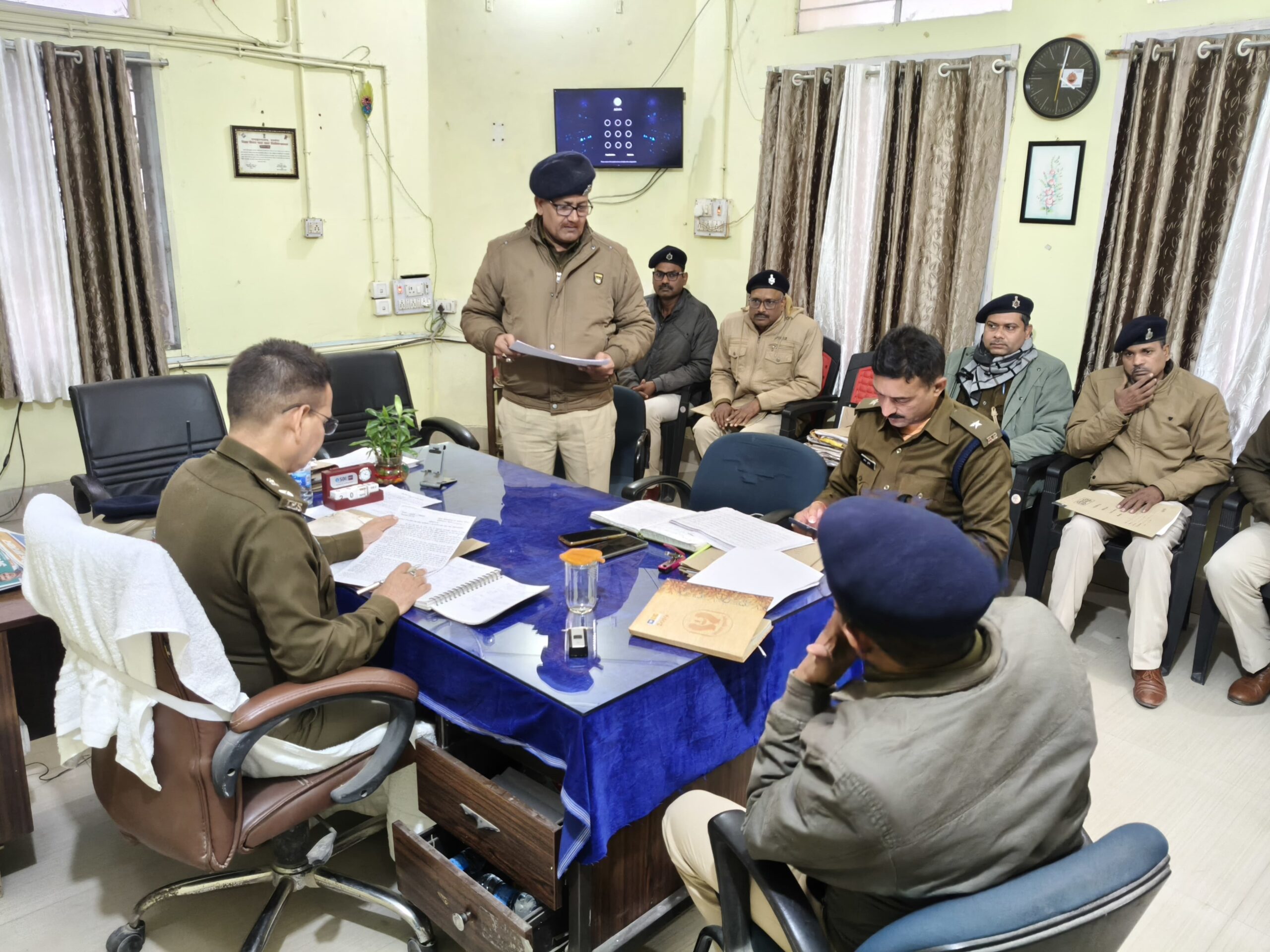 * **प्रतिवेदित कांडों की समीक्षा:** थाना के प्रतिवेदित कांडों की स्थिति की भी गहन समीक्षा की गई।