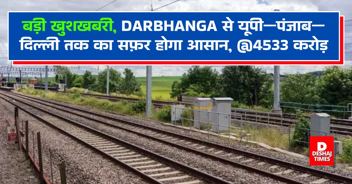 Darbhanga | बड़ी खुशखबरी, Darbhanga से यूपी—पंजाब—दिल्ली तक का सफ़र होगा आसान, @4533 करोड़, पढ़िए पूरी रिपोर्ट | रेल मंत्रालय ने दरभंगा-नरकटियागंज रेल खंड और दरभंगा-सीतामढ़ी-मुजफ्फरपुर रेल लाइन के दोहरीकरण को मंजूरी दे दी है। इस परियोजना पर ₹4,533 करोड़ की अनुमानित लागत आएगी और इसके पूरा होने से उत्तर बिहार की रेल कनेक्टिविटी में जबरदस्त सुधार होगा।