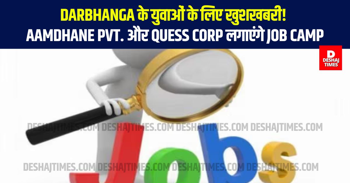 Darbhanga। श्रम संसाधन विभाग, बिहार सरकार, पटना के तत्वावधान में अवर प्रादेशिक नियोजनालय, दरभंगा के माध्यम से Aamdhane Pvt. Ltd. एवं Quess Corp Ltd. द्वारा विभिन्न प्रखंडों में जॉब कैंप का आयोजन किया जाएगा। यह कैंप सुबह 11:00 बजे से दोपहर 3:00 बजे तक आयोजित होगा।