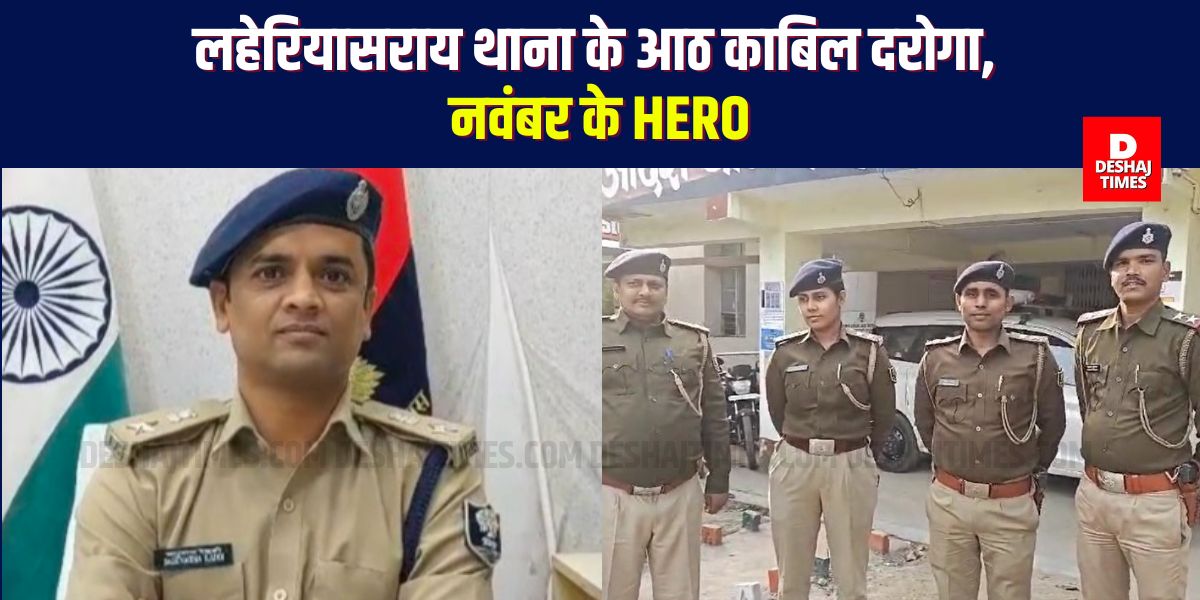 Report Prabhas Ranjan | दरभंगा । लहेरियासराय थाने में तैनात आठ दरोगा और प्रशिक्षु दरोगा को नवंबर माह में बेहतर कार्य करने के लिए एसएसपी जगुनाथ रेड्डी जलारेड्डी ने सम्मानित किया। इन पुलिसकर्मियों को नकद इनाम और प्रशस्ति पत्र देकर प्रोत्साहित किया गया।