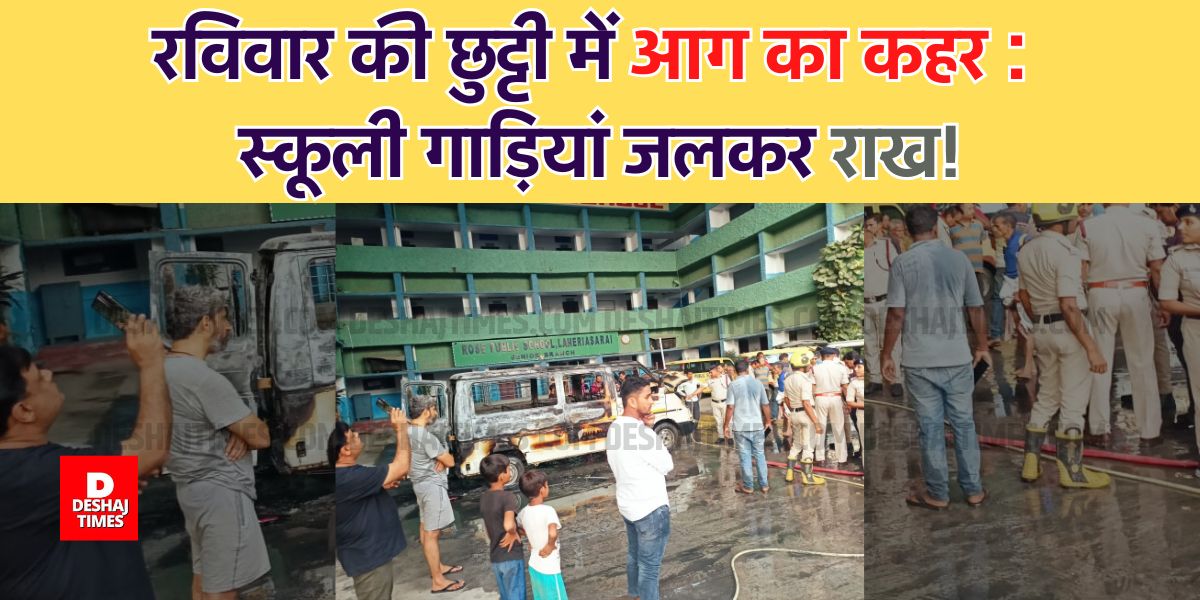 Prabhash Ranjan | दरभंगा के लहेरियासराय थाना क्षेत्र के जीएन स्थित रोज पब्लिक स्कूल के परिसर में खड़ी दो स्कूली गाड़ियों में आग लग गई, जिससे दोनों गाड़ियां पूरी तरह जल गईं।