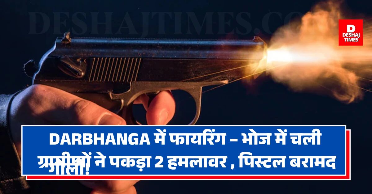 दरभंगा में फायरिंग से हड़कंप! दरभंगा में भोज के दौरान भोज में शामिल युवक पर जानलेवा हमला–पहले सिर पर बट, फिर चली गोली – संयोग से बच गई जान। गांव वालों ने दो हमलावरों को पकड़कर पुलिस को सौंपा। एक पिस्टल बरामद, प्राथमिकी दर्ज। मनीगाछी – इंद्राथर गांव में पुलिस जांच तेज।