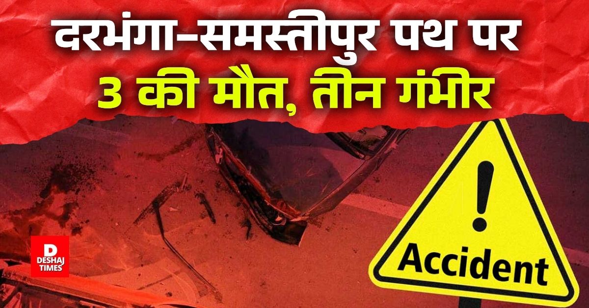 दरभंगा-समस्तीपुर पथ पर भीषण टक्कर, 3 की मौत, तीन गंभीर…@दरभंगा | बिशनपुर थाना क्षेत्र के नरसरा पंचायत भवन के सामने दरभंगा-समस्तीपुर पथ पर मंगलवार शाम करीब चार बजे हुए भीषण सड़क हादसे में तीन अज्ञात लोगों की मौके पर ही मौत हो गई, जबकि 3 अन्य गंभीर हैं।