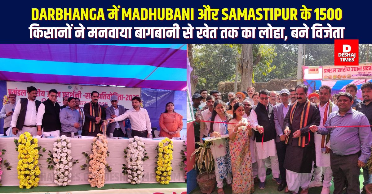 Darbhanga |कृषि कार्यालय बहादुरपुर परिसर में प्रमंडलीय उद्यान प्रदर्शनी, प्रतियोगिता और किसान मेला का आयोजन किया गया। इस कार्यक्रम का उद्घाटन सांसद डॉ. गोपाल जी ठाकुर (MP Dr. Gopal Ji Thakur) ने दीप प्रज्ज्वलित कर किया। प्रदर्शनी में दरभंगा, मधुबनी और समस्तीपुर जिलों के 1500 से अधिक सब्जी उत्पादकों और 100 से अधिक किसानों ने अपने उत्पादों का प्रदर्शन किया।