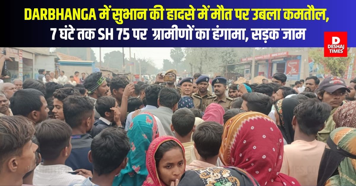 आंचल कुमारी। Darbhanga | कमतौल थाना क्षेत्र के माधोपट्टी पंचायत स्थित सुंदरपुर गांव में गुरुवार को मिट्टी लदे डंपर की चपेट में आने से 6 वर्षीय मासूम की दर्दनाक मौत हो गई। मृतक की पहचान मो. हिफाज के पुत्र सुभान (6 वर्ष) के रूप में हुई है। इस घटना के बाद गुस्साए परिजनों और ग्रामीणों ने शुक्रवार को एसएच-75 पथ को जाम कर दिया, जिससे करीब 7 घंटे तक यातायात बाधित रहा।