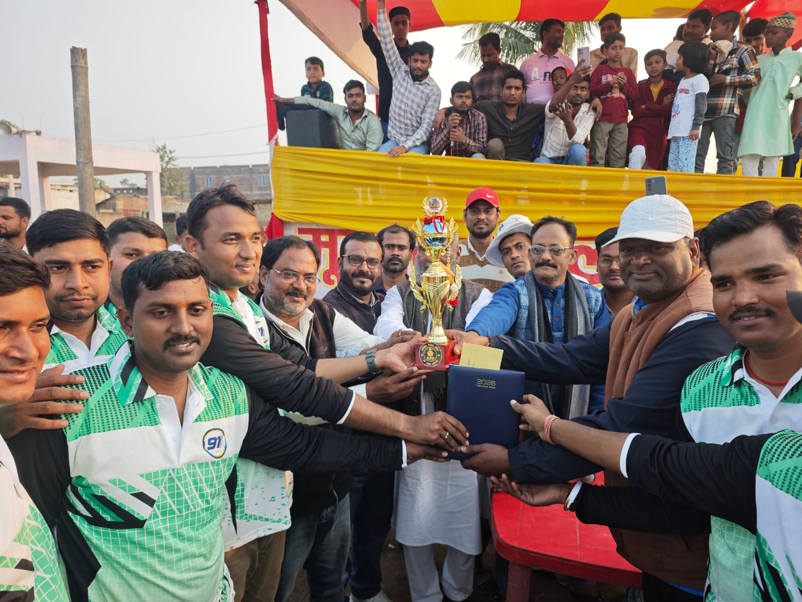 Cricket News: मून स्टार क्रिकेट क्लब, पाली के तत्वावधान में मंगलवार को पाली के ऐतिहासिक रणपरती मैदान में सद्भावना कप क्रिकेट के फाइनल मुकाबले का आयोजन किया गया। यह रोमांचक मुकाबला मीडिया इलेवन और पुलिस प्रशासन इलेवन के बीच खेला गया। इस महत्वपूर्ण मैच में पुलिस प्रशासन इलेवन की टीम ने शानदार खेल का प्रदर्शन करते हुए मीडिया इleven को 16 रनों के अंतर से पराजित कर विजेता ट्रॉफी अपने नाम कर ली। दर्शकों से खचाखच भरे मैदान में क्रिकेट प्रेमियों का उत्साह देखते ही बन रहा था। मीडिया इलेवन के कप्तान गणेश कुमार झा ने टॉस जीतकर पहले क्षेत्ररक्षण का निर्णय लेते हुए पुलिस प्रशासन इलेवन को बल्लेबाजी के लिए आमंत्रित किया। आप पढ़ रहे हैं देशज टाइम्स बिहार का N0.1।पहले बल्लेबाजी करते हुए पुलिस प्रशासन इलेवन ने निर्धारित 12 ओवरों में 7 विकेट खोकर 95 रन का चुनौतीपूर्ण स्कोर खड़ा किया। लक्ष्य का पीछा करने उतरी मीडिया इलेवन की टीम ने संघर्ष तो किया, लेकिन निर्धारित 12 ओवरों में 8 विकेट गंवाकर केवल 79 रन ही बना सकी और लक्ष्य से 16 रन दूर रह गई। यह मैच बिहार स्पोर्ट्स के लिए एक महत्वपूर्ण घटना रहा, जिसमें स्थानीय प्रतिभाओं को अपनी खेल क्षमता दिखाने का अवसर मिला।विजेता टीम के कप्तान और घनश्यामपुर के थानाध्यक्ष आलोक कुमार ने अपने हरफनमौला प्रदर्शन से सभी को प्रभावित किया। उन्होंने बल्लेबाजी में महत्वपूर्ण 23 रन बनाए और गेंदबाजी में भी कमाल दिखाते हुए 2 ओवरों में मात्र 9 रन देकर 2 अहम विकेट चटकाए। उनके इस उत्कृष्ट प्रदर्शन के लिए उन्हें ‘मैन ऑफ द मैच’ चुना गया। वहीं, उपविजेता मीडिया इलेवन की ओर से पत्रकार एम. रज़ा ने 33 रनों की शानदार पारी खेली, जो टीम के लिए सर्वोच्च स्कोर रहा।Darbhanga News: पाली सद्भावना कप में Cricket का जलवा, रोमांचक मैच में पुलिस प्रशासन इलेवन ने मीडिया इलेवन को हरायामैच के दौरान थानाध्यक्ष आलोक कुमार ने एक विशेष खिलाड़ी, बिरौल के केशव कुमार चौधरी, की जमकर प्रशंसा की। दिव्यांग होने के बावजूद केशव ने जुझारू खेल का शानदार प्रदर्शन किया, जिसे आलोक कुमार ने सभी खिलाड़ियों के लिए प्रेरणास्रोत बताया। उन्होंने कहा कि केशव का जज्बा हमें सिखाता है कि किसी भी चुनौती को दृढ़ संकल्प से पार किया जा सकता है। आप पढ़ रहे हैं देशज टाइम्स बिहार का N0.1।