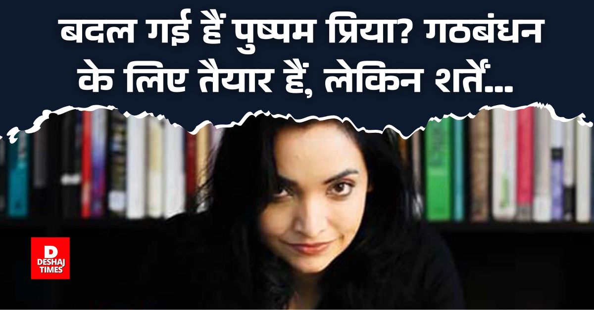 2020 में अकेली थीं, 2025 में खोज रहीं साझेदार! बदल गई हैं पुष्पम प्रिया? अब किस ओर जाएंगी पुष्पम प्रिया — महागठबंधन या NDA? सस्पेंस बरकरार! तो माना जाए, पुष्पम प्रिया को ‘पुष्पा राज’ चाहिए।