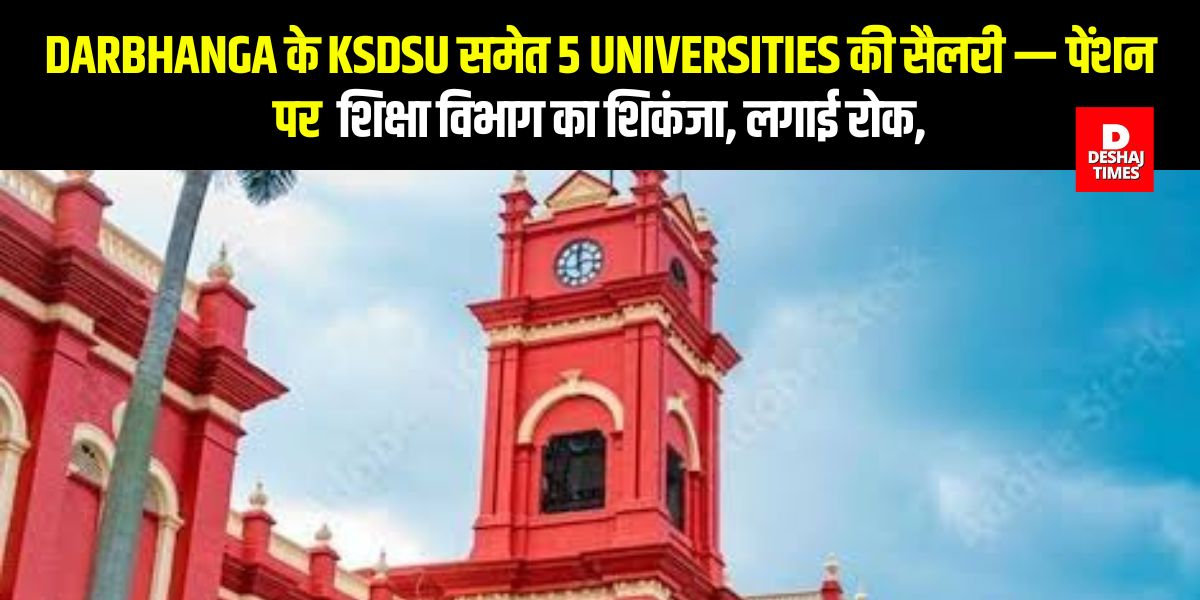 Darbhanga | बिहार शिक्षा विभाग ने पटना विश्वविद्यालय, तिलकामांझी भागलपुर विश्वविद्यालय, वीर कुंवर सिंह विश्वविद्यालय (आरा), मुंगेर विश्वविद्यालय, और कामेश्वर सिंह दरभंगा संस्कृत विश्वविद्यालय की सैलरी और पेंशन पर रोक लगा दी है। यह रोक शिक्षकों और कर्मचारियों की जानकारी पे-रोल मैनेजमेंट पोर्टल (Payroll Management Portal) पर अपलोड न करने की वजह से लगाई गई है।