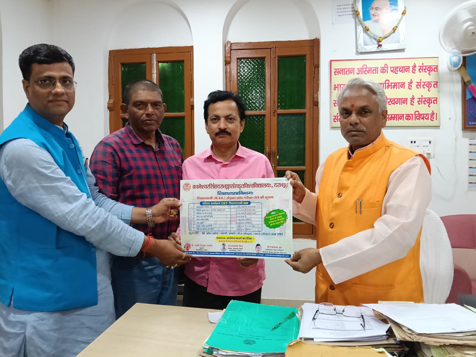 शिक्षाशास्त्री कोर्स में आवेदन करते समय छात्रों को विशेष सावधानी बरतनी होगी। ऑनलाइन आवेदन में प्रोग्राम चयन के दौरान ‘बी.एड’ और ‘शिक्षाशास्त्री’ दो विकल्प आते हैं। संस्कृत के छात्रों को अनिवार्य रूप से ‘शिक्षाशास्त्री’ का चयन करना चाहिए। ‘बी.एड’ विकल्प चुनने पर इस विभाग में नामांकन नहीं हो पाएगा। मौके पर उपकुलसचिव डॉ. नवीन कुमार झा समेत शिक्षाशास्त्र विभागीय प्राध्यापक डॉ. रामानंदन झा, डॉ. अवन कुमार राय, डॉ. प्रीति रानी, डॉ. निशा, डॉ. संजीव कुमार, डॉ. गोपाल कुमार महतो, पवन सहनी, कुंदन कुमार, श्रीधर आदि मौजूद थे।