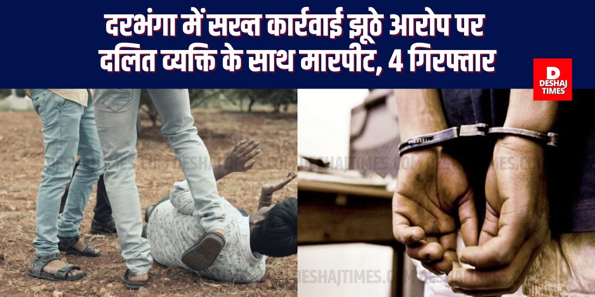 Prabhash Ranjan, दरभंगा | बिहार के दरभंगा जिले में एक दलित व्यक्ति के साथ मारपीट करने के आरोप में सदर थाना पुलिस ने चार आरोपियों को गिरफ्तार किया है। आरोपियों को सोमवार को न्यायिक हिरासत में भेज दिया गया।