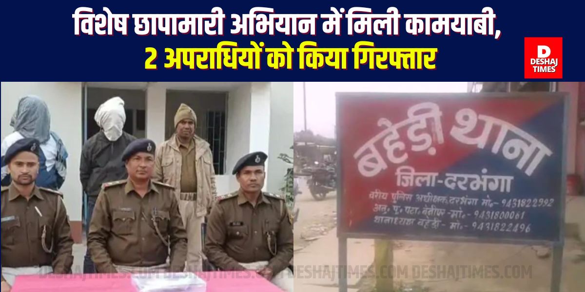 प्रभाष रंजन, दरभंगा | बहेड़ी थाना पुलिस ने मंगलवार को विशेष छापेमारी अभियान के तहत दो अपराधियों को लोडेड कट्टा और मोबाइल के साथ गिरफ्तार किया। गुप्त सूचना के आधार पर पुलिस ने यह कार्रवाई की, जिसमें पता चला कि अपराधी किसी बड़ी घटना को अंजाम देने की साजिश रच रहे थे।