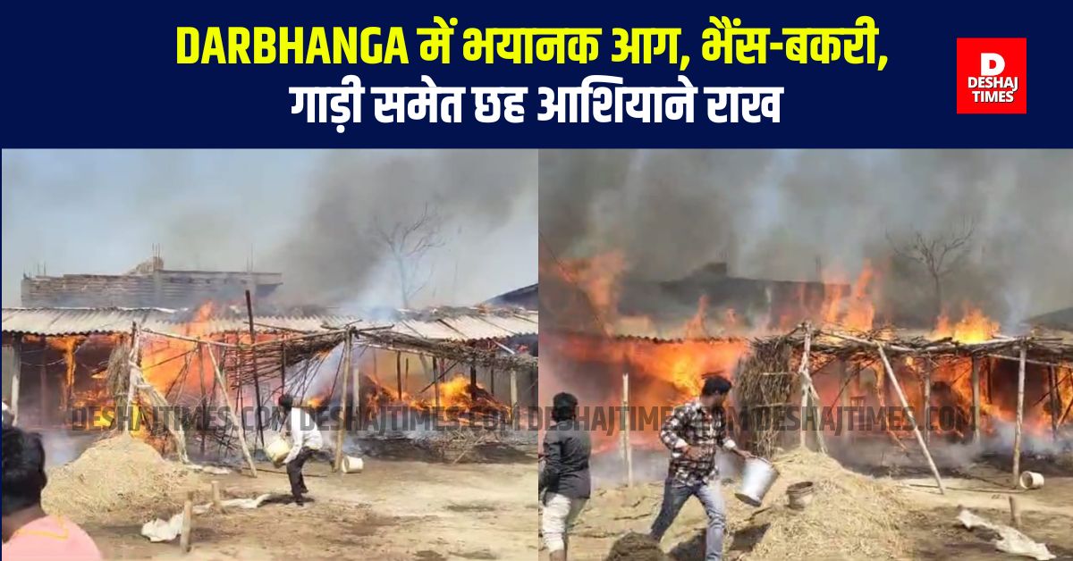 Darbhanga | कुशेश्वरस्थान के तिलेश्वर पंचायत स्थित तिलकपुर गांव में भीषण आग लगने से आधा दर्जन घर जलकर राख हो गए। इस आग में भैंस, बकरियां और एक गाड़ी भी जल गई।