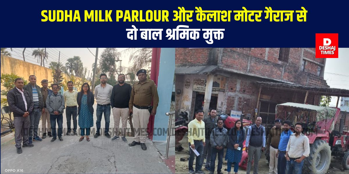 Sudha Milk Parlour और कैलाश मोटर गैराज से दो बाल श्रमिक मुक्त